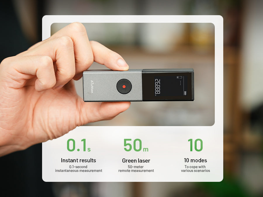 The ATuMan LSB Laser Measure is a lightweight, pocket-sized digital tool designed for fast and precise measurements. With up to 50m measuring distance and ±2mm accuracy, it supports multiple modes including length, area, volume, and Pythagoras. Weighing only 44g and sized at just 86×22×11mm, it’s easy to carry anywhere. Perfect for DIY projects, home improvement, and interior design.