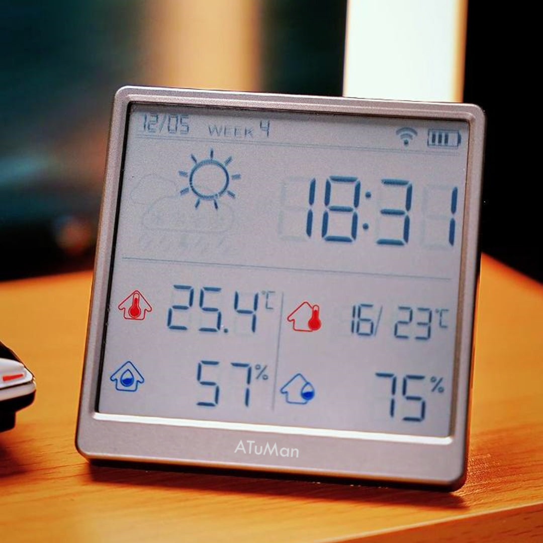 Smart Air Care WiFi-enabled thermohygrometer with accuracy; syncs with HomeKit/Mi Home for remote checks. 4.3-inch display shows temp, humidity & weather; magnetic base/wall mount fits any room. 450mAh battery lasts 30 days perfect for bedrooms, living rooms, and baby rooms.