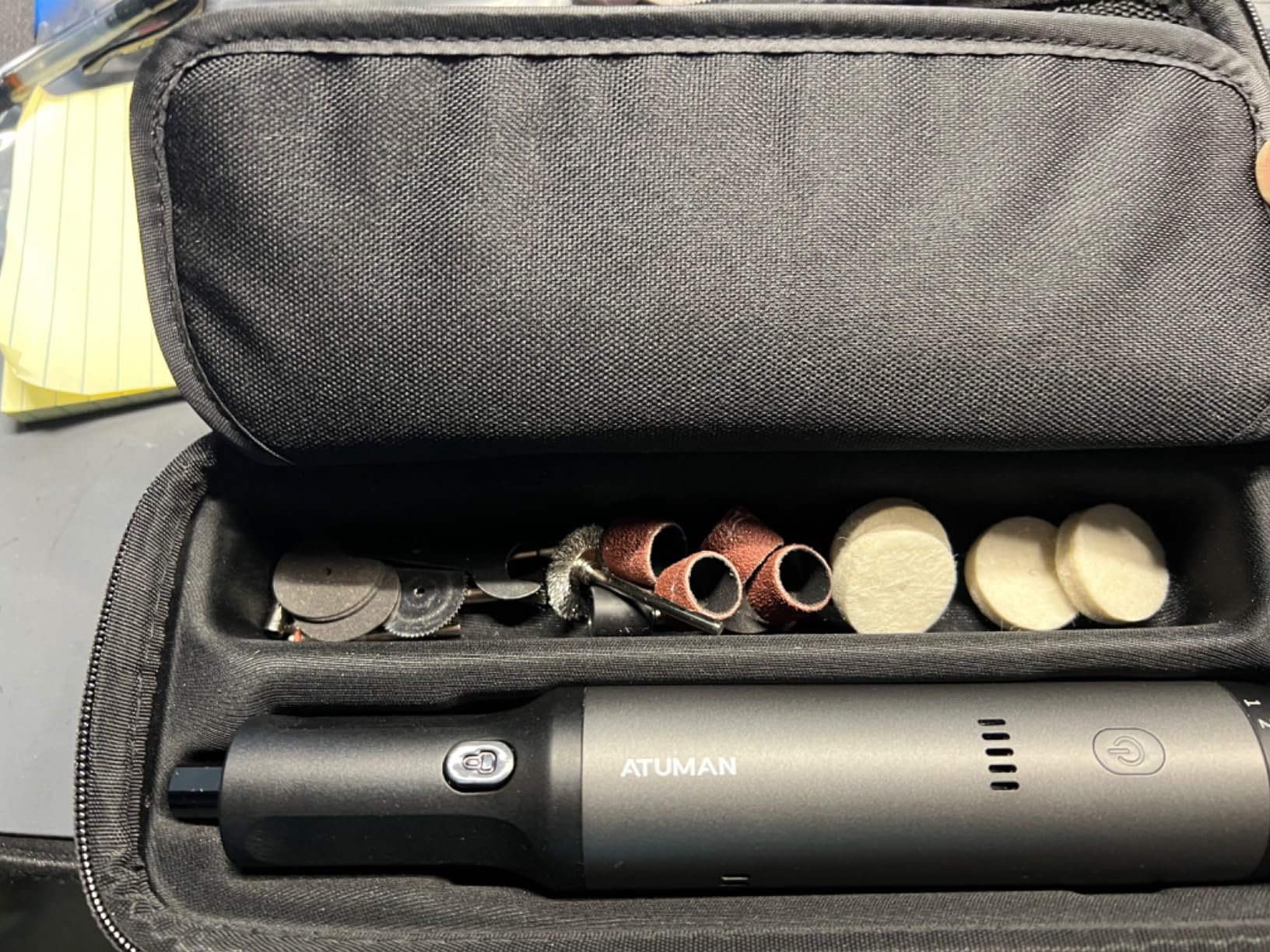 The ATuMan EP2 Rotary Tool Kit is a versatile solution for DIY, crafting, and home repair. With adjustable speed control, it handles engraving, grinding, cutting, and polishing tasks with precision. The ergonomic aluminum-plastic body, one-touch shaft lock, and efficient cooling design ensure safe, stable, and comfortable operation. Compact and portable, the EP2 comes with 42 multi-purpose bits and a storage case, making it an ideal tool for woodworking, electronics, and creative projects.